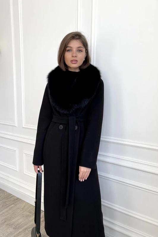 Элегантное классическое зимнее кашемировое пальто с меховым воротником