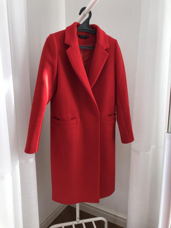 Жіноче пальто з вовною ( 60% вовни і 40% полієстер) яскравого кольору, можна носити з паском і без. Довжина по спині 100 см Довжина рукава 62 см Ширина груд. до 50 см Іде прямого крою