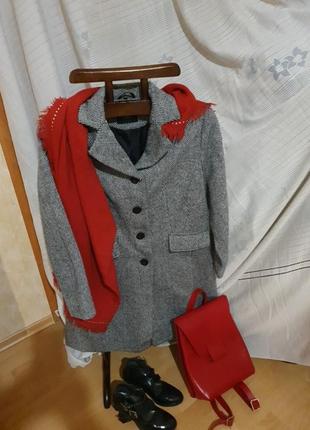 серое с черным, удлиненное, по бокам спереди карманы классика, шерсть40%
