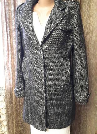 тепленькое пальтишко, 70%шерсти, английский воротник,застегивается на четыре пуговицы,два кармана боковых и один нагрудный карманчик. Состояние отличное,нюансов нет. длина 85 см дл.рукава 61 см плечи 42 см ПОГ 48 см ПОТ 45 см ПОБ 50 см
