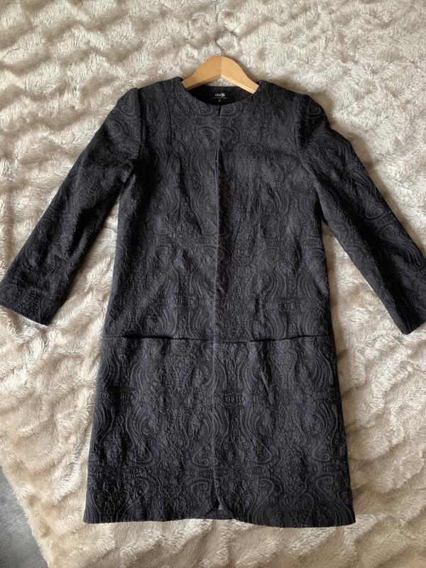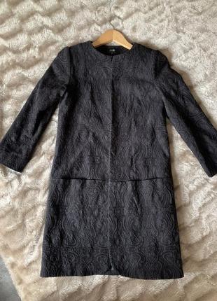 Пальто-жакет, красивая жаккардовая ткань, рукав три четверти
