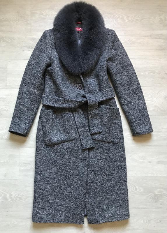 Длинное зимнее пальто с натуральным мехом кролика серого цвета. Производитель тм Модус. Ткань букле/кашемир. Имеет пояс. Утеплитель слимтекс. С 2-х сторон кармана. Застегивается вверху на 3 пуговицы, внизу на потайные пуговицы и заклепку. Мех можно снимать. Длина пальто от плеча 106 см, рукав - 60 см Ширина в груди 46 см, в талии 44 см. Пальто в отличном состоянии, поскольку одевала его очень редко. Возможен торг