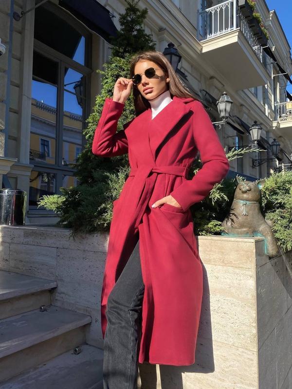 Мод 230 Пальто ФОТО РЕАЛ Длина 115 см ! Размер 42-46 Ткань кашемир на подкладке С плечиками Цвета : фрез , горчица , чёрный , красный , голубой , беж , капучино , бордовый . (р862)