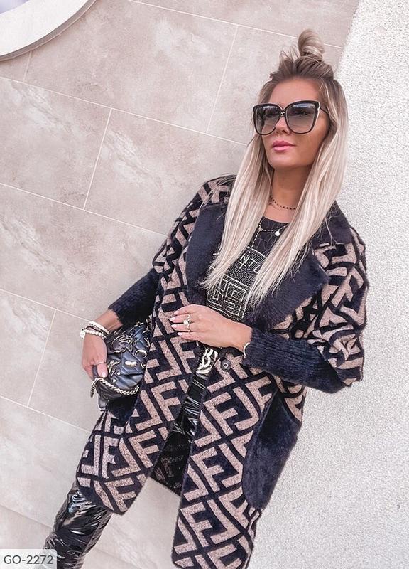 Кардиган GO-2271 модель: 7108 Розмiри: 42-48 КАРДИГАН-ПАЛЬТО З АЛЬПАКИ Замиряти: Загальна довжина спереду-80 см Ширина від пахви до пахви - 58 см Ширина в талії-61 см Ширина внизу-60 см Ширина в біцепсі-19 см Склад матеріалу: 100% нейлон. Поліроль