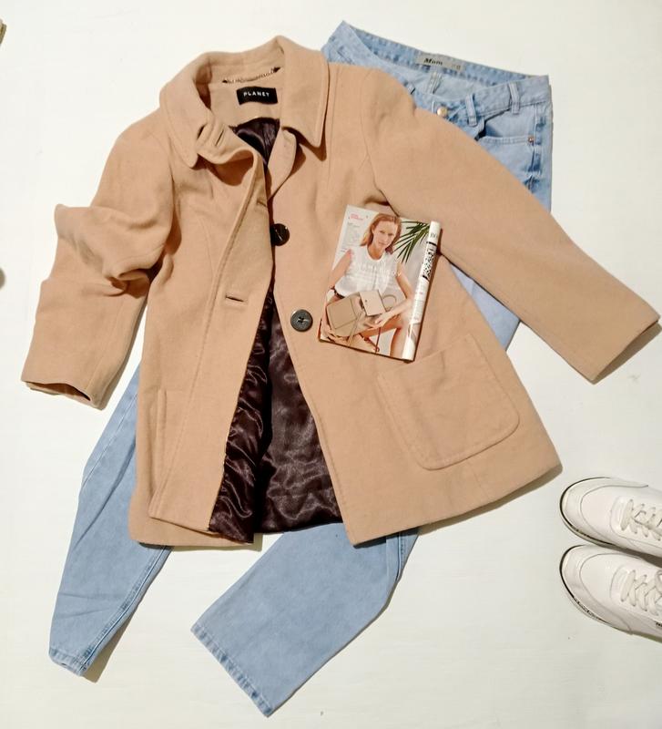 состояние идеальное материал 70% шерсти 10% кашемир цвет песочный подкладка шоколадного цвета длина -79 см пог-51 см 1/2 по низу пальто-63 см длина рукава-59 см плечи-43 см