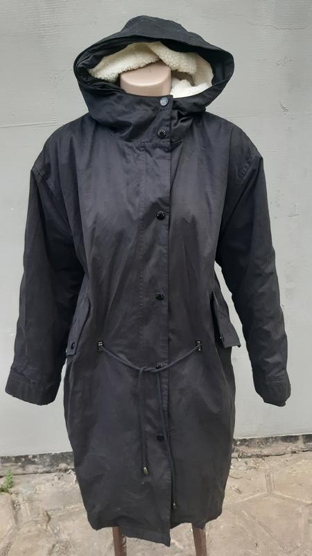 класна парка , розмірі М. .підкладка відстігаеться, і можна носити як тренч весною. колір чорний. на фото не завжди передае колір заміри на фото