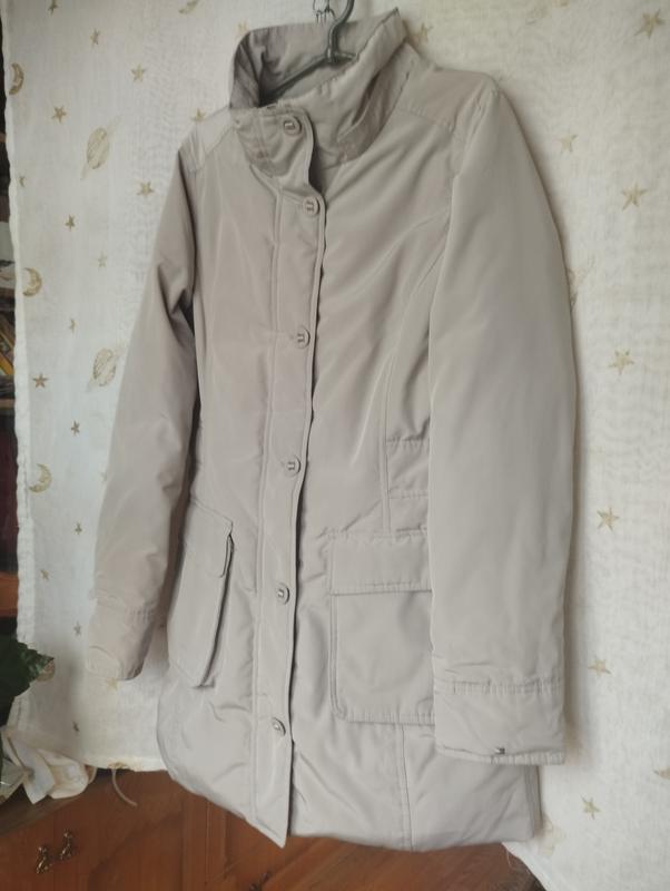 Парка 46-48 размер.Стан новой.Цвет молоко. Утепление синтепоном. Плащевка водозащитная,плотная. Каптура отсутствует.