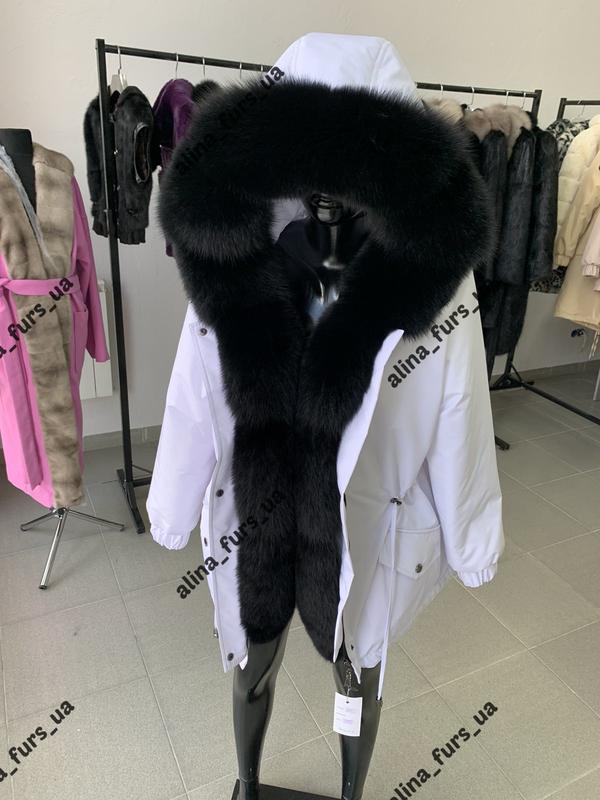 Белая парка с натуральным мехом песца, белая папка с черным мехом песца, 42-60 р.р.