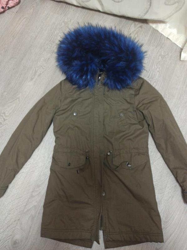 Парка, одевали один раз,мех от шляпы отстёгивается,всредненые нет.Замеры:длина по спинке 78см,ширина под рукавами 47см,рукав от плеча 61см, заплечо 9см.Кошенные сверху обманки.Цина 700грн.