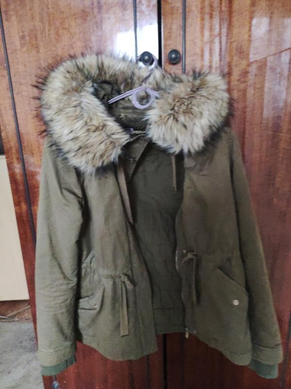 парка женская, размер S, без дефектов; мех снимается; есть подкладка, которую тоже можно снять, и будет очень легкая ветровка