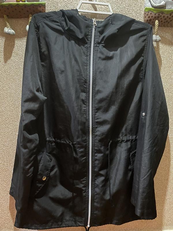 Тоненькая, но хорошо защищает от ветра и дождя Пог -50 см Пот -49 см регулируется кулисой Пос /55 см Плечи -39 см Длина рукава -61 см Длина -75 см #76