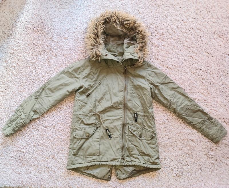 В отличном состоянии. Оригинальный. Очень качественная. Имеет хорошую подкладку и тонкое наполнение. Мех снимается. 100 % котон Длина зад-71см.перод 60см, ПОГ- 47см, рукав- 58см, рукав от шлеча- 69см