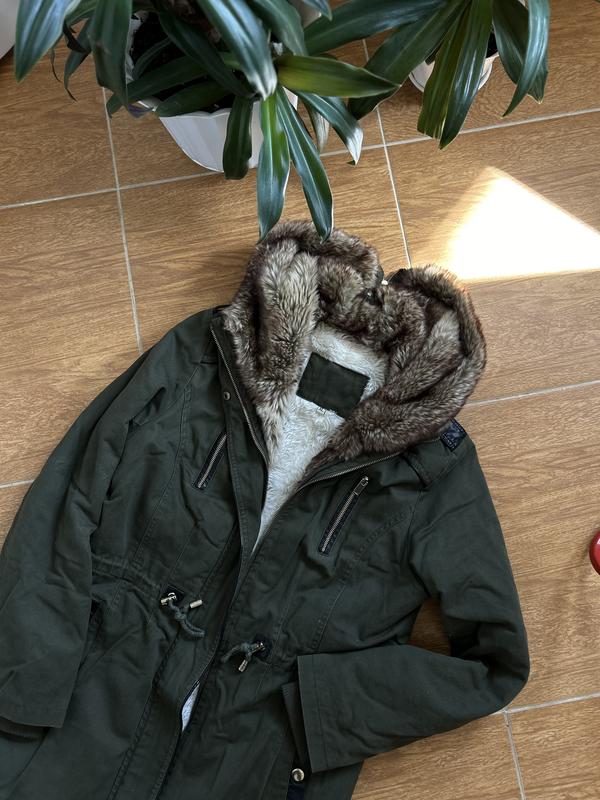 Парка в хорошем состоянии. Из недостатков - нужно заменить замочек. Он железный, перестал защелкиваться. Джинс красиво стирается. Куртка с середины по всей длине утеплена искусственным мехом, капюшон тоже. Вставки из эко кожи.