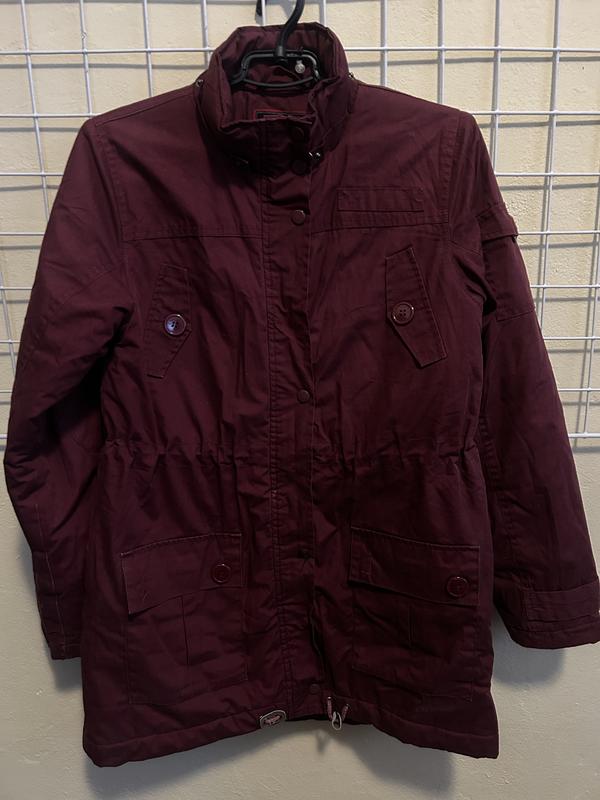 Состояние 4 из нюансов нет капюшона и на одной кнопке отпал верх но кнопка функционирует просто без фурнитуры сверху «самая крышка от кнопки Бордо отпала» Длина- 87 см Полуобхват груди- 47 см От плеча до плеча-40 см Рукав от горлишка- 73 см