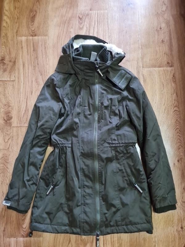 Драгоценного бренда.В идеальном состоянии. Три замка, возможно, регулировать размер.До середины на утеплении.Талия стягивается шнуровкой, по низу тоже есть шнуровка.На рукавах манжет в виде дополнительной длины. Капюшон не отстегивается.Тепла, подходит на зиму. Качественная фурнитура. Может быть на размер S.Красные на замке.