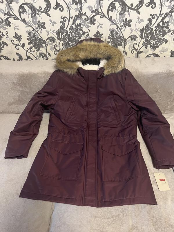 Нова, у фабричному целофані та з вішалкою, високоякісна куртка L .Придбана в США. Зроблена для американського ринку. Колір бордовий . Тепла незйомна підкладка. Легка, але щільна тканина, що не продувається. Виглядає дуже красиво та стильно. Капюшон не зйомний. Артикул моделі lw9rc940. В груді - 58-59 см Довжина рукава від шиї - 74 см Довжина - 80-81 см