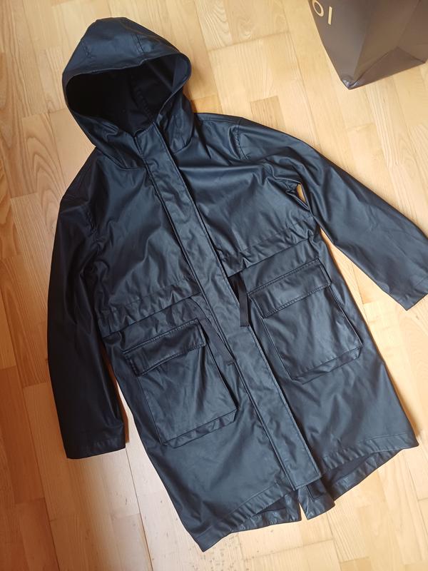 Куртка - парка дождевик reserved с капюшоном унисекс черное пальто