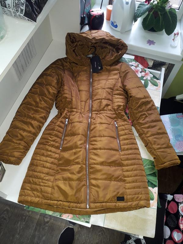 дуже гарна куртка рудого кольору з відблиском золота....виглядає шикарно якісний матеріал, красиві шви наповнювач - натуральний тонкий пух демисезон , єворозима