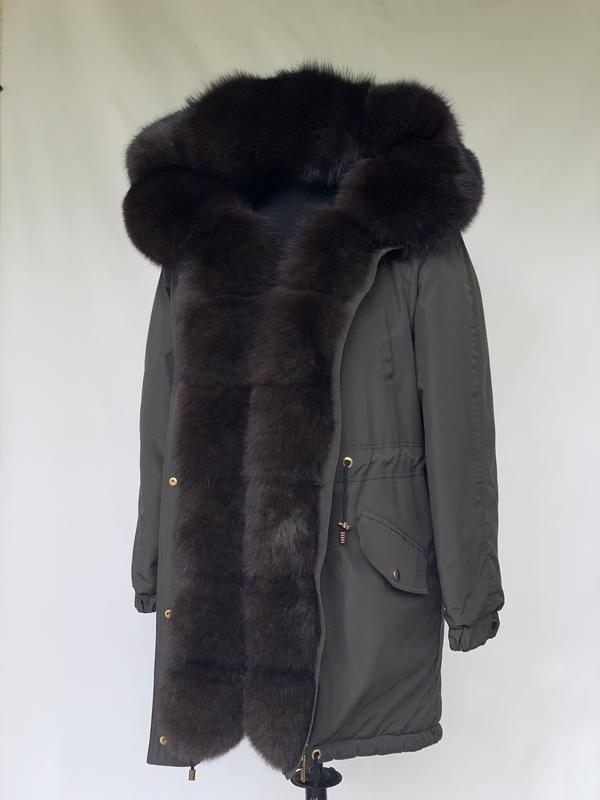 Парка с натуральным мехом песца . Окрас под темный соболь. Цвет Ткани хаки. Собственное производство. Размерная сетка. Утеплитель слимтекс 250. Фурнитура качественная. По желанию дополнительно высылаю фотографии