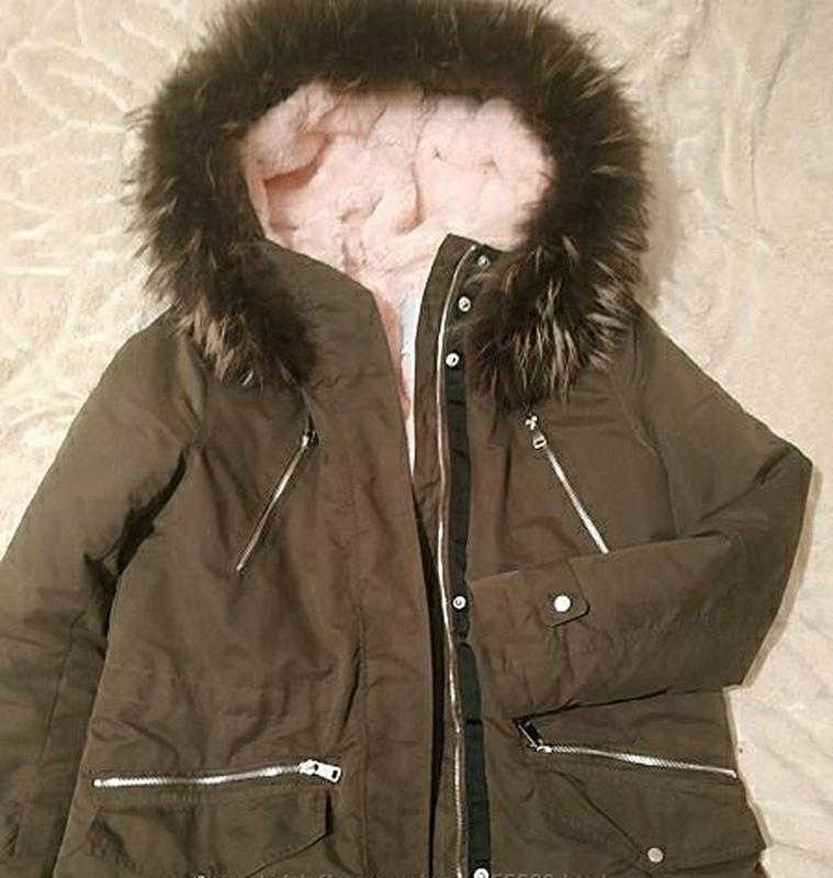 Mango парку р S по бірці але можна на М Хутряна підкладка відстібається!оч м'яка тепла Колір - Хакі Всередині на куліске Хутро на капюшоні - єнот ( не рідна) Продаю разом з ним! Рожевий исск хутро - рідна по каталогу Фурнітура - якісна ! Не облазить і ТД Стан відмінний! В хімчистці не була ! Дефектів немає ніяких !