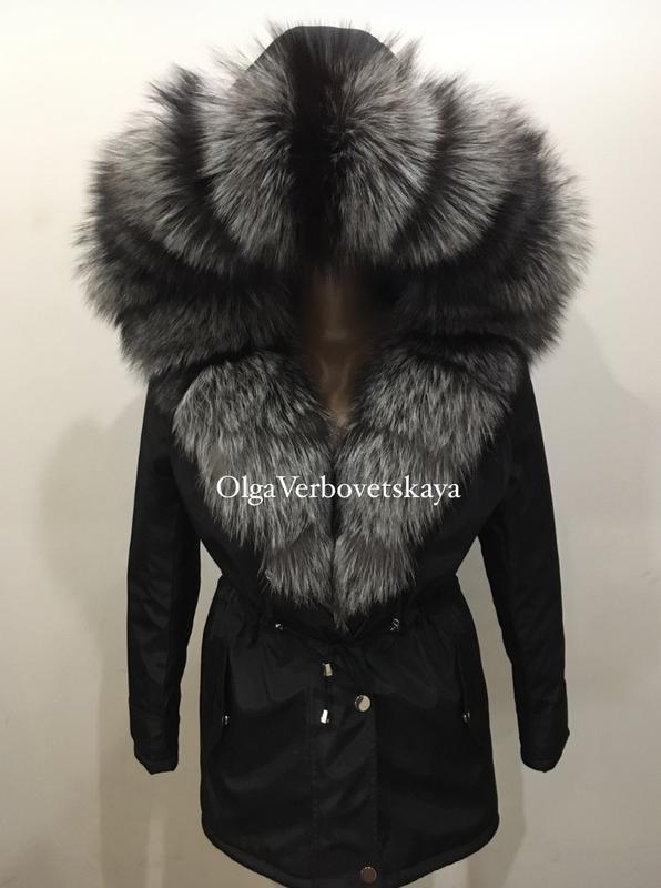 Зимова парка з розкішним, натуральним хутром норвезької чорнобурки Колір чорний Хутро чорнобурка Довжина 75 см Хутро на капюшоні і з бортів до середини Всередині утеплювач холософт, до -20 На талії є куліска, спереду 2 кишеньки Застібається на змійку Є всередині застібки, щоб носити хутром зовні В наявності усі розміри Для підбору розміру пишіть ваші параметри, обхват грудей, талії, стегон і зростання Пересилка Новою Поштою Є післяплата з мінімальною передоплатою