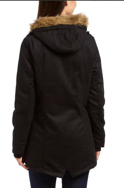 Тепла і стильна парку. Прямий крій,спереду застібається на блискавку і 2 кнопки.Комір оздоблений штучним хутром, 2 кишені спереду. Всередині підганяється по фігурі завдяки куліске. На стьобаної підкладці з утеплювачем.Сезон - осінь-весна. Верх - 90% поліестер,10%-вовна. Розмір S. Заміри:ширина по плечах 37см, ширина по грудях 45см, ширина по низу 55 см, довжина рукава 67см, довжина виробу 71см (ззаду на 5 см довше) Нова,замовляла з Америки( прийшла з цінником 116 дол - початкова вартість парки.)