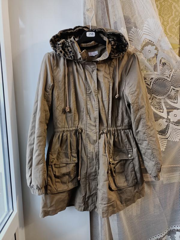 Парка Размер указан 14 Материал верха 100% коттон Длина по спинке 80см Длина спереди 75см ПОГ (от подмышки до подмышки) 53см ПОТ 43см ПОБ 70см Рукав 61см Плечи 42см Замеры произведены по верху изделия