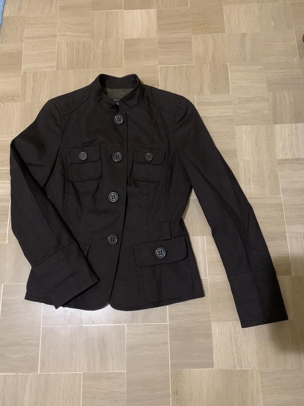Жакет приталенный. из плотного коттона. В новом состоянии, но утерян пояс. Под него на талии шлейки. На размер M, но ориентируйтесь по замерам. Плечи 38, грудь 43, талия 38,5, длина 56,5.
