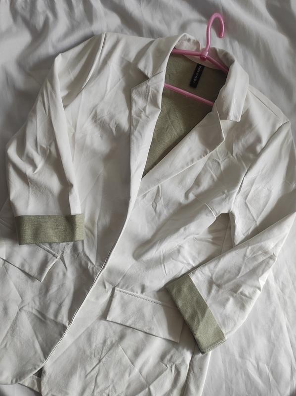 Стан дуже гарний, по бірці виробник Італія Карманів не має Рукав укорочений Справа має невелику плямку синього кольору /майже не помітна в житті / на останньому фото