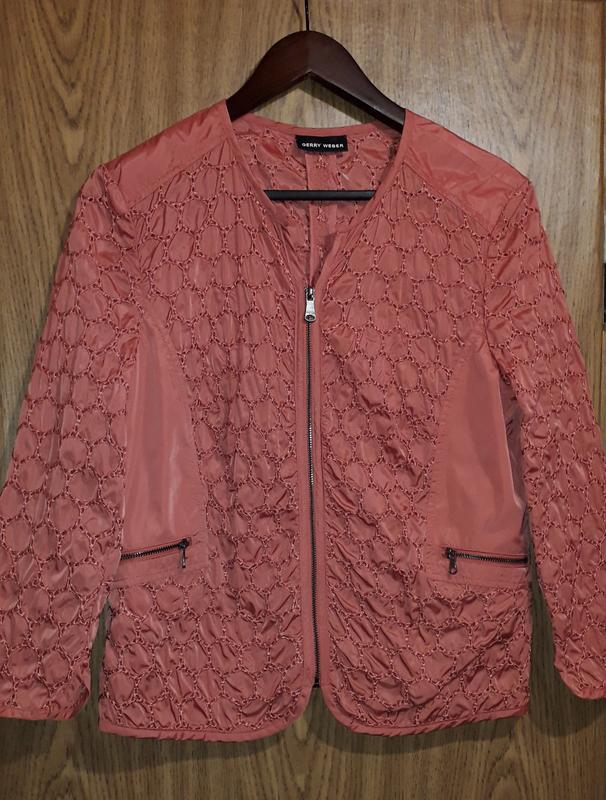очень легкий жакетик без подкладки красивого терракотового цвета,карманы и жакет на молнии,качество отличное,товар из Германии,оплата на карту приват или наложеный платеж по предоплате на доставку