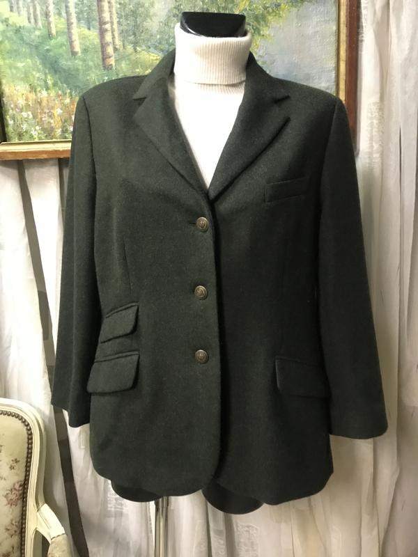 Высочайшее качество изделия. Шикарный женский жакет отAbraham Moon. Состояние новой вещи. Цвет-темно-зелёный. Отделка ворота-цвет молодой травы, подкладка -темно-зелёная в горошек. Состав:шерсть-100/. Размер по бирке-44. Замеры: длина-70 см, ПЯлГ-50 см, ПОТ-47 см, ПОБ-54 см, рукав-56 см.