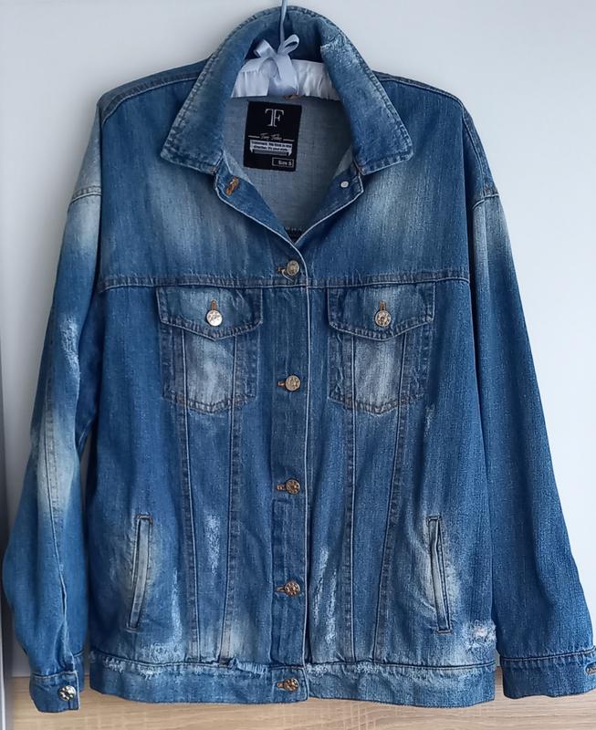Розмір вказаний S, але дивіться заміри. Заміри: плечі - 54см (приспущені); ПОГ - 55см; низ - 52см; рукав - 54см; довжина - 67см.