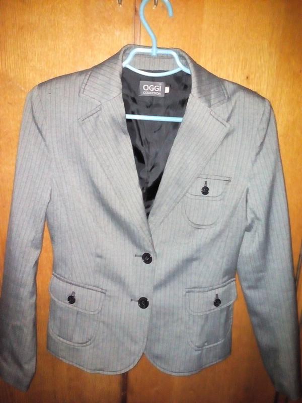 Пиджак на подкладке (есть такие же брюки), ткань серая в рубчик