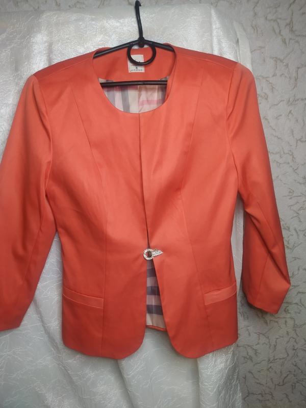 Пиджак кораллового цвета. В реальности выглядит как на последнем фото на теле. Очень красивый🤗😍