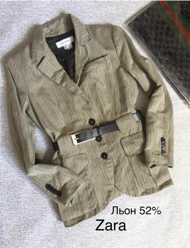 Жакет zara льон 52%. Стан нового Замір; довжина 62см,рукав 57см,плечі 38см,об грудей 88см,талія 75-80см, ідеально сідає по фігурі. Кармани великі бокові і маленький на грудях. Не пошкодуєте