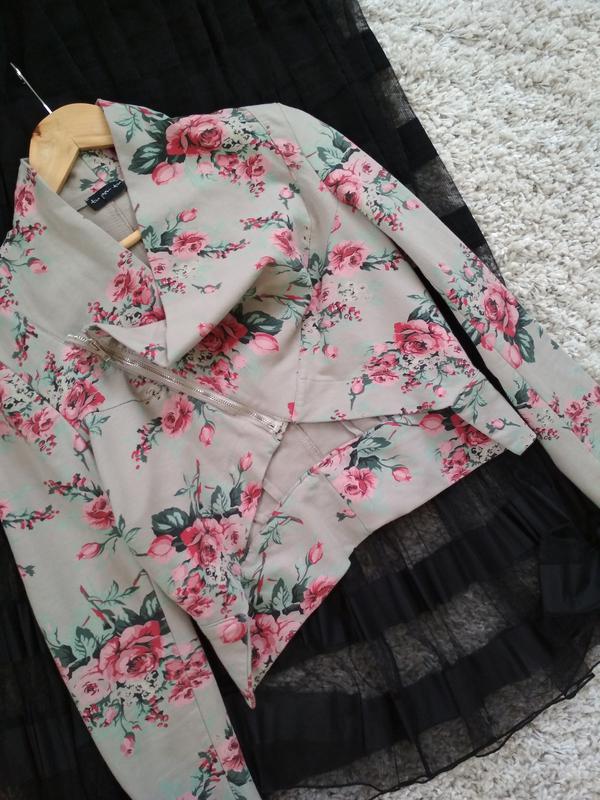 Шикарный жакет в цветочный принт с молнией , р. 40