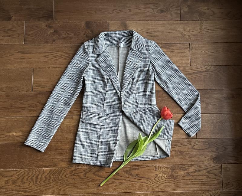 Новый трендовый жакет в гусиную лапку, без подкладки, одевался всего один раз. Незаменимая вещь в вашем гардеробе на любое время года. Сочетается абсолютно с любым верхом и низом. Ткань очень приятная к телу. Украинский производитель 💙💛 Длина изделия - 65 см Длина рукава - 58 см Полуобхват груди - 46 см Полуобхват талия - 40 см