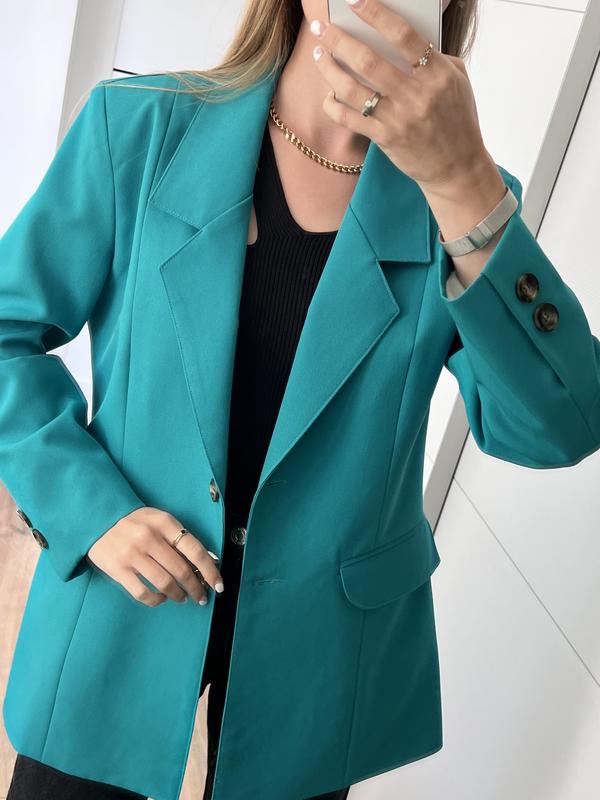 Жакет прямого крою, з підкладом, соковитого зеленого відтінку Стан ззовні ідеальний, всередині на підкладі є плямка, при носці, звичайно, не видно( останнє фото) Розміру і бірок немає Одягнено на розмір S, зріст 165