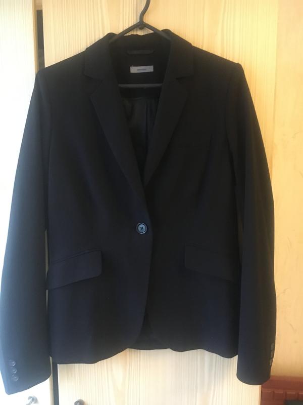 Черный классический приталенный пиджак, плечи 40, рукав 66, пог 53, длина 67, пот 45, поб 53