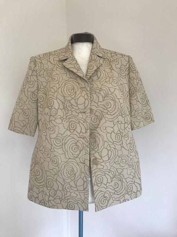 Пиджачк. Короткий рукав. Длина 67см, рукава 30см, плечи 44 см, ПОгруди 56см, Поталии 53см.