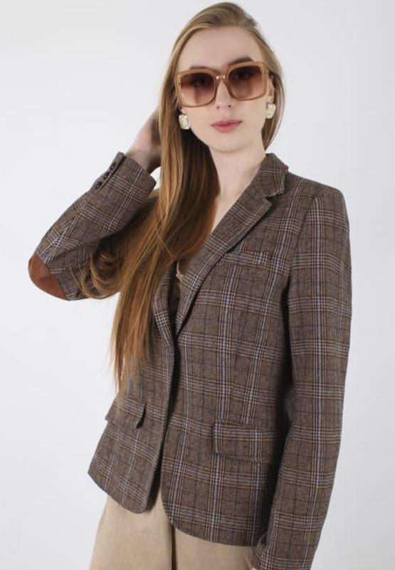 Пиджак в клетку от бренда H&M. Теплый и удобный. Держит форму. Размер Eur 40 (US 10) Замеры: Длина - 62 Плечи - 40 Грудь - 45 Рукав - 63 Надето на девушку размера S, Рост 175. Но подойдет и на больший объем груди, офогенный состав 20% шерсти! Круто смотрится как с джинсами, так и с платьем