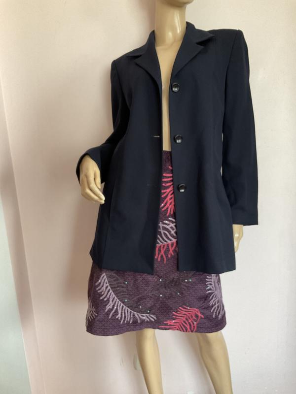 Ткань средней плотности. На подкладке. Карманы.без дефектов. Замеры в груди 51 см в талии 50 см в бедрах 56 см разрезы длина 77 см рукав 57 см по окружности руки 21см в плечах 42см 4:7:23