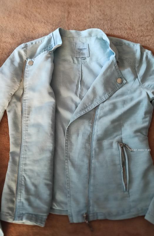 Женский девичий пиджак косуха на подкладке, застежка на молнии, 2 кармана на молнию, 55% лен, 45 %сотон, цвет мята, размер XS 34