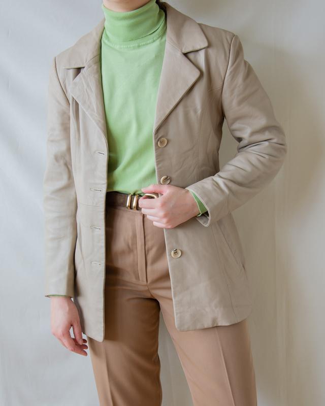 Винтажный кожаный жакет Hugo Boss🍢 - 100% кожа - Приталенный крой - Цвет серо-бежевый - Мягкая кожа - Размер XS-M - Стан идеален