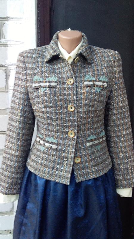 Шикарный твидовый жакет пиджак в стиле Шанель от бренда RIANI. RIANI – немецкий бренд люксовой женской одежды, основанный выдающимся дизайнером Юргеном Букенмейром в 1978 году. Вещи Riani разработаны таким образом, что подходят для любого случая: работы в офисе, шопинге, прогулках в парке, вечернем выходе в свет. Вещи немецкого бренда – это синоним отличного качества. Она прослеживается в каждом пустяке, начиная от кроя и заканчивая декоративными деталями. При пошиве изделий были использованы детально разработанные лекала, благодаря которым вещи садятся на фигуре, словно влитые, даря комфорт во время ходьбы и передвижения по лестнице. Высококачественная обработка швов и фурнитуры делает изделия долговечными, а ровные декоративные стежки без пробелов доставляют эстетическое удовольствие.