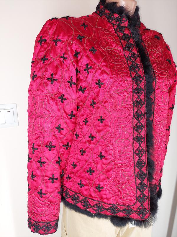 Нарядный винтажный пиджак жакет с вышивкой и мехом mirasol