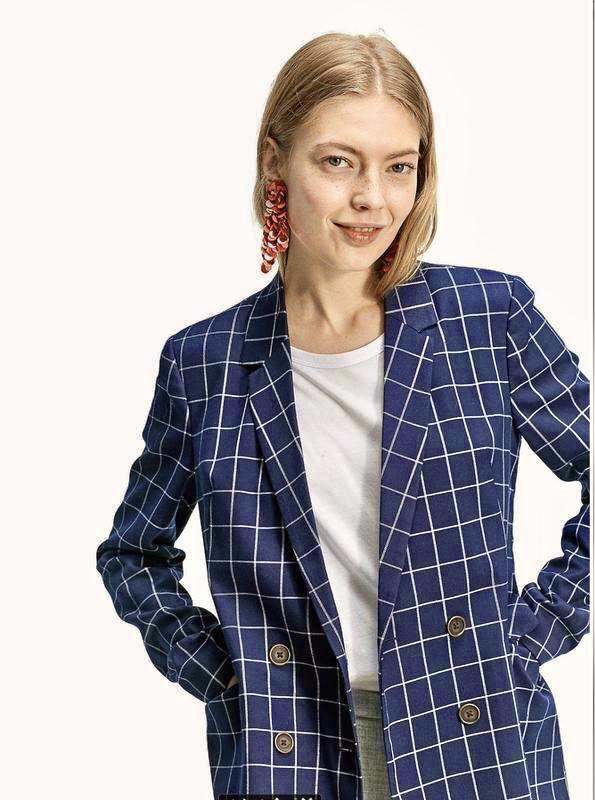 Стильный синий пиджак в клетку, немного приталенный с карманами, эффектный и практичный.Замеры смотрите на фото.