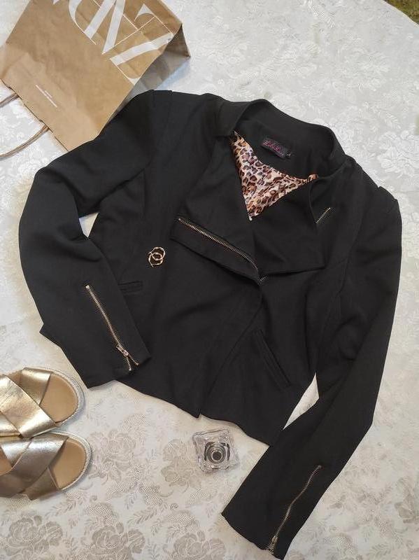 Вкорочений жакет-косуха Розмір М -L ПОГ - 46, ширина плечей - 39, довжина рукава по внутрішньому шву - 44, довжина - 50 Стан ідеальний