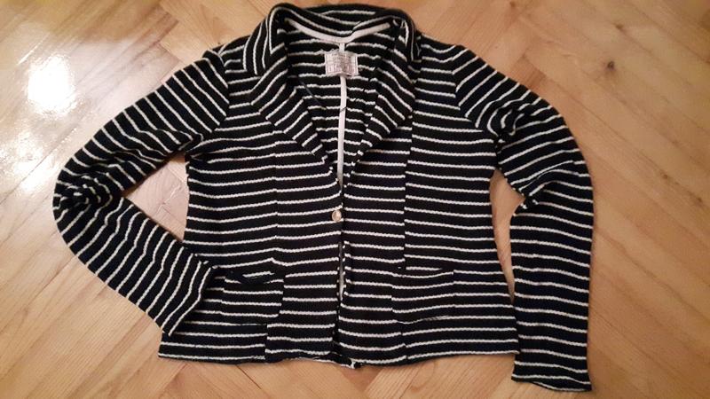 Отличный пиджак на 1 пуговицу с накладными карманами.Укорочен.