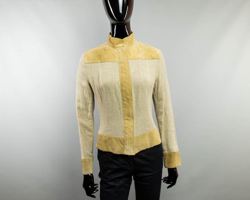 Крутой льняной пиджак с замшевыми вставками dolce & gabbana.жакет